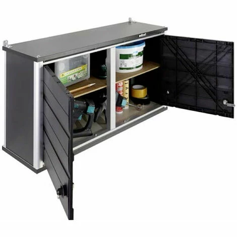 Werkstattschrank wird standardmäßig mit Halterungen für die Wandmontage und mit der Möglichkeit der Erweiterung mit Regalen geliefert. Zusammensetzung: – 2 verschließbare Türen aus sisntetico-Material, – Aluminiumstruktur und Profil, – Seiten- und Rückwände in HDF, – MDF-Basis und Top, Abmessungen: – Höhe: 500 mm – Breite: 985 mm – Tiefe: 300 mm