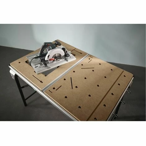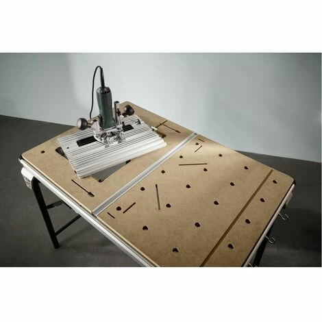 • inklusive Befestigungsmaterial für die Fixierung und Justierung von Handkreissägen, Stichsägen und Oberfräsen