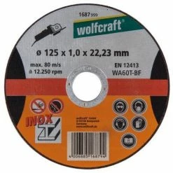 wolfcraft 1 Trennscheibe für Metall, speziell für Edelstahl, lose Ø 125 x 1,0 x 22,2 mm. EAN: 4006885168794. Art.-Nr.: 1687999.