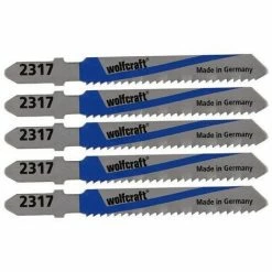5 Stk. wolfcraft Stichsägeblätter T-Schaft / HSS / Stahlblech 3-6mm, NE-Metall, Aluminium / feiner Schnitt / in Aufbewahrungsbox 52 mm