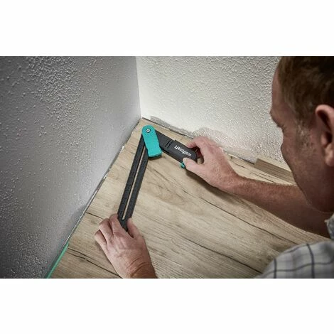 Die Winkelschmiege ist eine clevere Lösung zum komfortablen Abgreifen von Winkeln mit anschließender Übertragung auf das Werkstück – ideal bei Verlegearbeiten oder im Möbelbau. Im ersten Schritt schieben Sie die beiden Kunststoffschenkel in die Wandecke und richten sie entlang der Wände aus. Mit dem Feststellhebel fixieren Sie die Position. Der Hebel ist so konstruiert, dass er auch in engen Arbeitsbereichen mit nur einer Hand von beiden Seiten gut zu bedienen ist. Im nächsten Schritt positionieren Sie die Winkelschmiege an Ihrem Werkstück und zeichnen den Winkel an. Auch zur Nutzung als Streichmaß (Anreißen von parallelen Linien) eignet sich die Winkelschmiege hervorragend. Dabei unterstützen Sie die Skala auf dem beweglichen Schenkel und das Führungsloch für den Bleistift. Einfach den Anschlag anlegen, den Stift einstecken und die Winkelschmiege über das Werkstück
