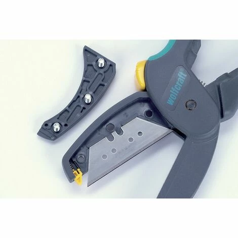 - Berührungsschutz durch federnde Sicherheitsnase an Vorderseite der Klingenhalterung
