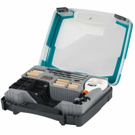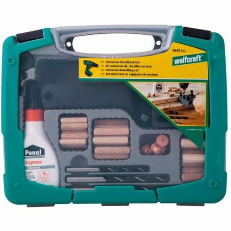 Das Komplett-Starter-Set ist für 6, 8 und 10 mm Holzdübel. Für alle gängigen Holz-Dübel-Verbindungen wie passgenaue und stabile Eck-, T- und Flächenverbindungen in Kunststoffkoffer der Universal-Holzdübel-Box sind folgende Dinge enthalten: 1 Meisterdübler 26 Holzdübel ø 6 mm, 22 Holzdübel ø 8 mm, 16 Holzdübel ø 10 mm, 3 Holzbohrer ø 6, 8, 10 mm, 6 Dübelfixe je 2 St. ø 6, 8, 10 mm, 3 Tiefenstopps, ø 6, 8, 10 mm, 1 Holzleim 20 mlInhalt: 78 teiligMaße Dübel: 26 Langholzdübel: Durchmesser 6 mm, Länge = 30 mm 22 Langholzdübel: Durchmesser 8 mm, Länge = 40 mm 16 Langholzdübel: Durchmesser 10 mm, Länge = 40 mm Art des Dübels: HolzdübelAusführung des Dübels: geriffeltGeeignet für: Holz Befestigung von: Eck-, T- und Flächenverbindungen Montageart: stabile Eck-, T- und Flächenverbindungen mit 6-, 8- 10-mm-Holzdübeln Verpackung: Koffer/BoxLieferumfang: 1 Meisterdübler – Dübellehre für Holzverbindungen 26 Langholzdübel, Buche, Ø 6 mm, l = 30 mm 22 Langholzdübel, Buche, Ø 8 mm, l = 40 mm 16