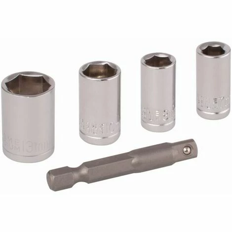 Inhalt: 5 teilig für Akku-Schrauber und BohrmaschinenSchlüsselweite: 7, 8, 10, 13Material: Chrom-Vanadium-Stahl